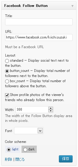また、ダッシュボードにも「Follow Button」の設定がありますが、ウィジェットを使う場合は、ウィジェットの設定が優先されるようです。