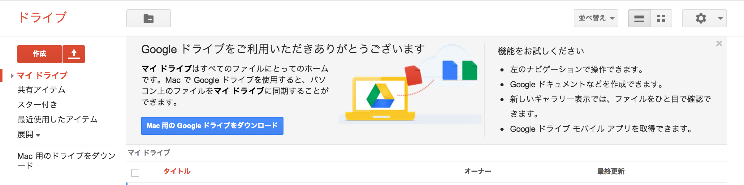Google ドライブにログインします。