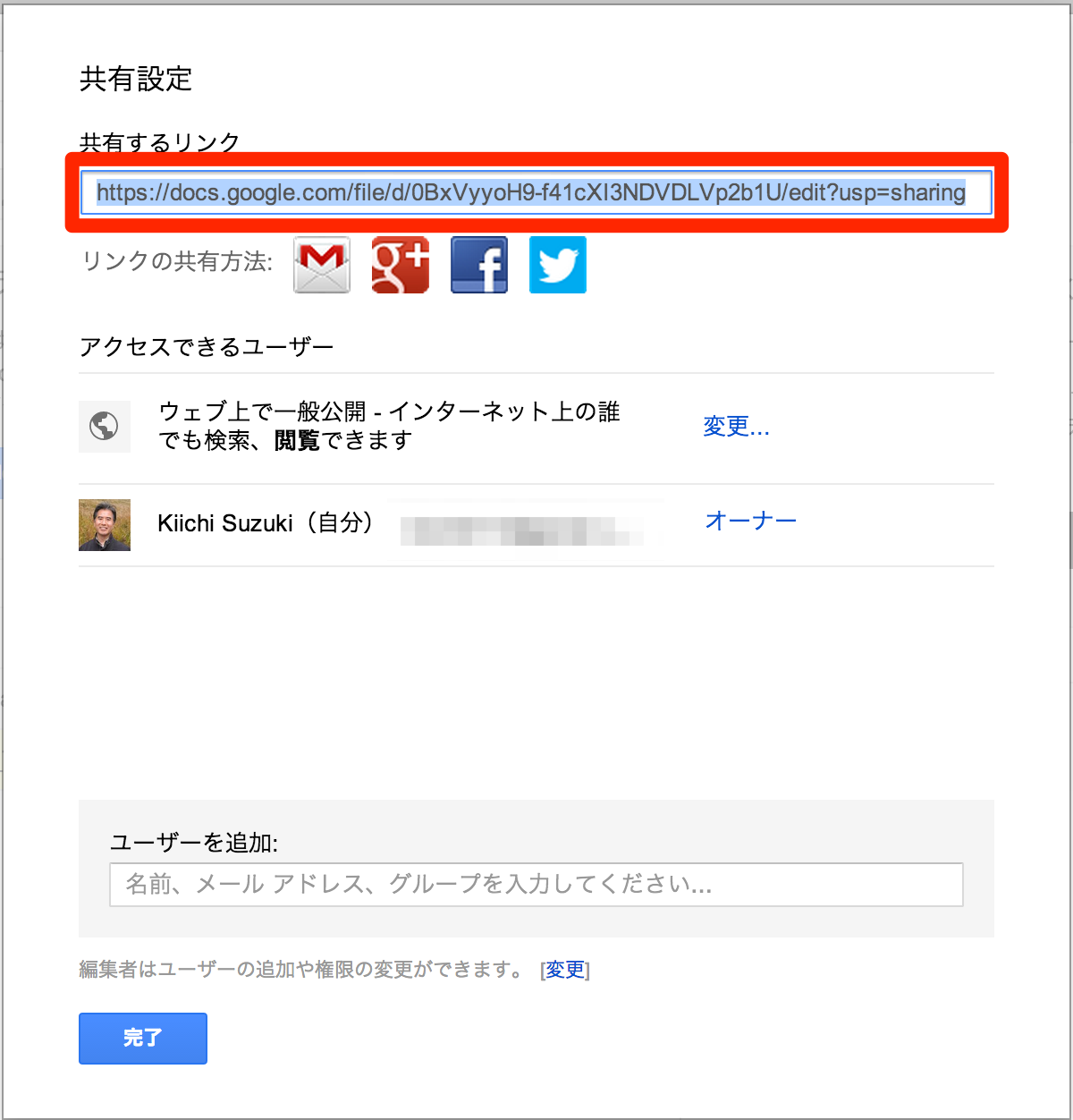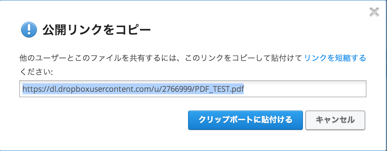 Public フォルダが通常の Dropbox フォルダになったため、共有リンクをコピーして張り付けておきます。