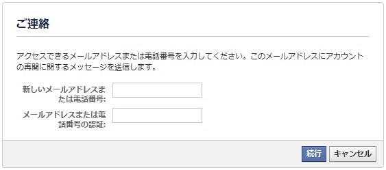 (4)「ご連絡」のダイアログで、新しいメールアドレスまたは電話番号を入れると再開に関するメッセージを送信するとなっています。「認証」とありますが、どのように使うのかはわかりません。