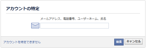(2)「アカウントの特定」で、メールアドレス、電話番号、ユーザーネーム、氏名の入力を求められます。