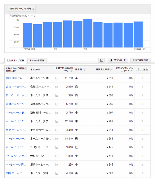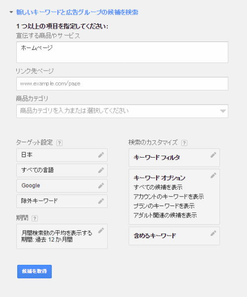 キーワードプランナーの利用