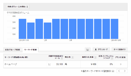 もともとは、リスティング広告用のツールですが、どのようなキーワードがどれだけ使われているかを調べることができます。